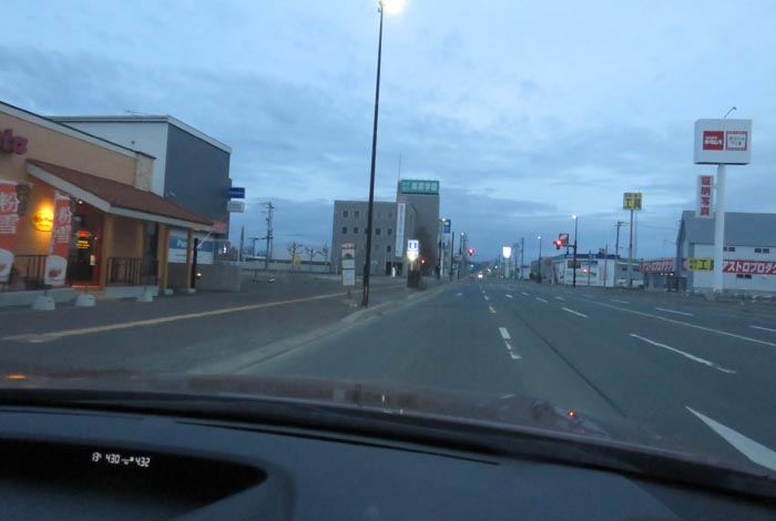 午前4時30分、北4条通りの国道39号交差点を右折で緑園通り方向
