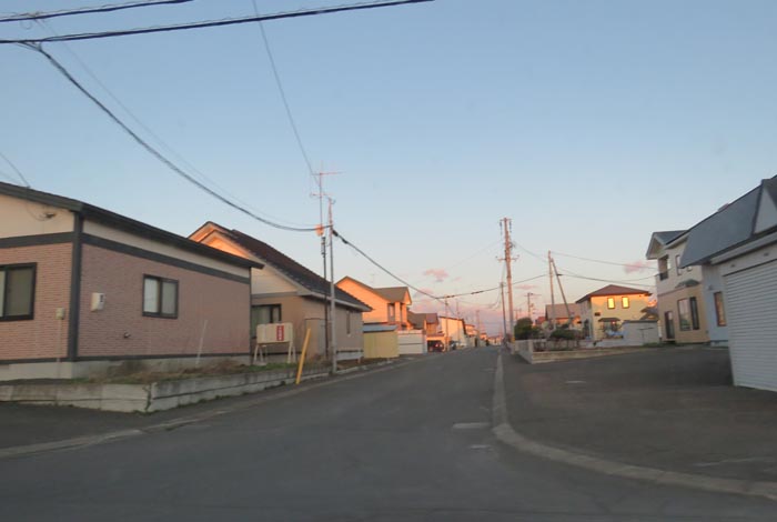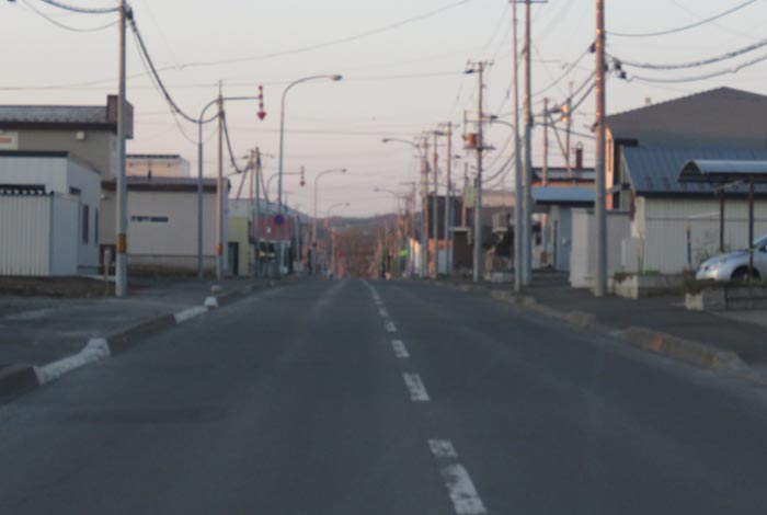 産岸通りから左折して西5号線のバス停前から北光通り交差点方向