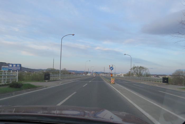 とん田通り、無加川橋を渡り錦町の南岸通り交差点