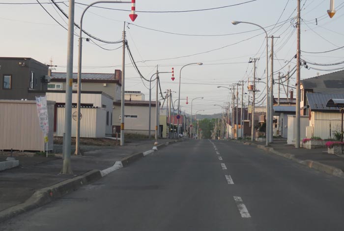 産岸通りから左折して西5号線のバス停前から北光通り交差点方向