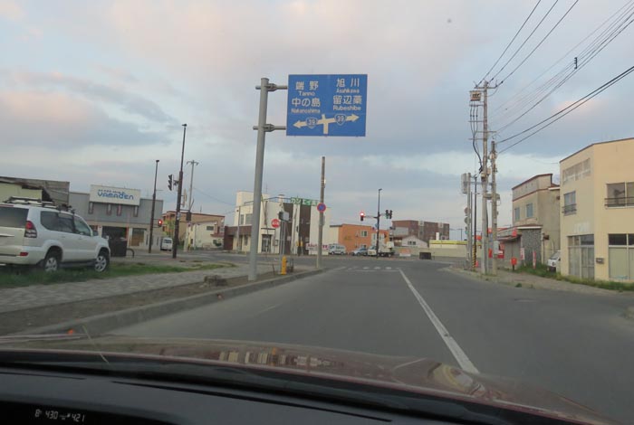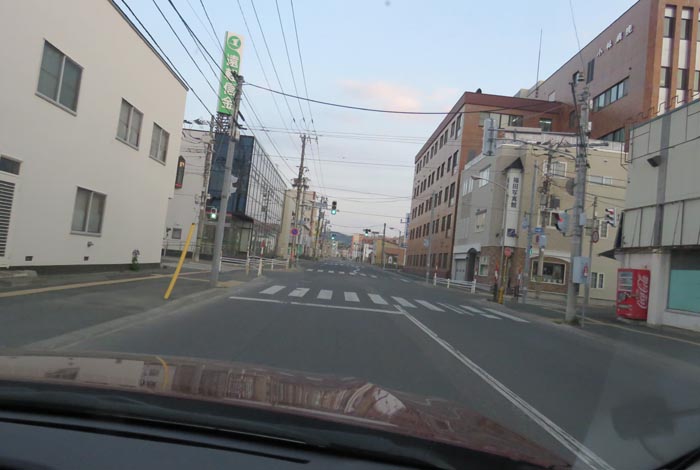 左折すると本町の国道39号交差点方向、奥がオホーツクビール方向