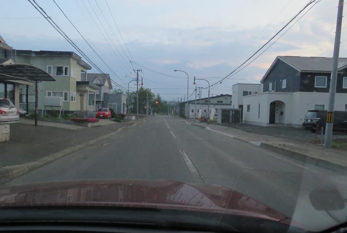 末広町の南岸通り、西4号線バス停前から野付牛自動車学校方向