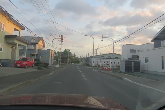 末広町の南岸通り、西4号線バス停前から野付牛自動車学校方向