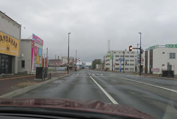 末広町の南岸通り、西4号線バス停前から野付牛自動車学校方向