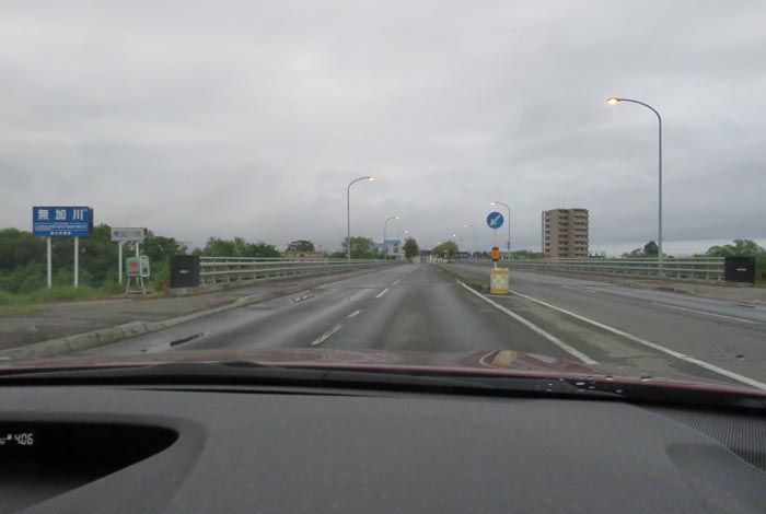 交差点から奥が無加川の右岸堤防で写真奥が国道39号方向