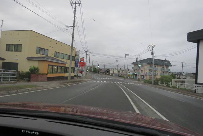南岸通り、野付牛自動車学校前、前方はとん田通りの交差点