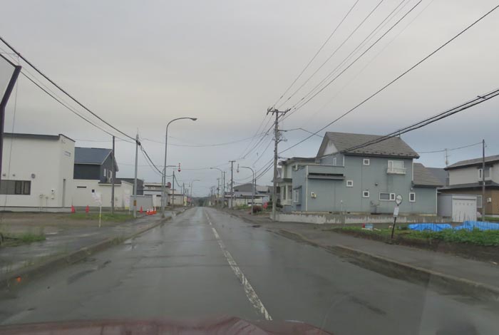 産岸通りから左折して西5号線のバス停前から北光通り交差点方向
