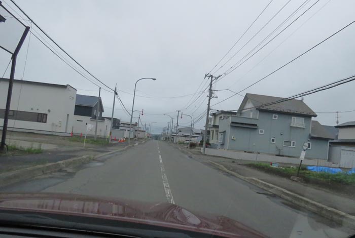産岸通りから左折して西5号線のバス停前から北光通り交差点方向