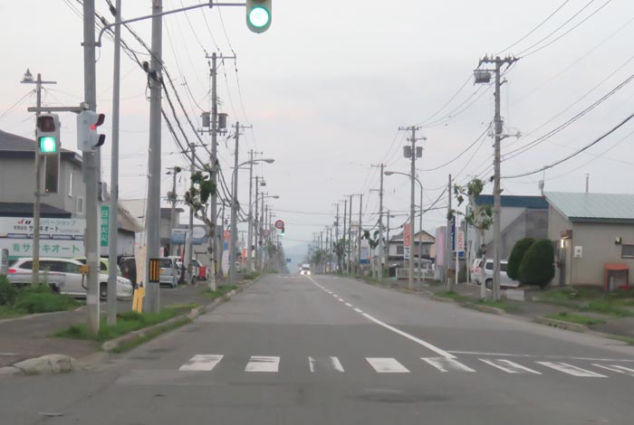 午前4時10分、南岸通り、野付牛自動車学校前から無加川町方向