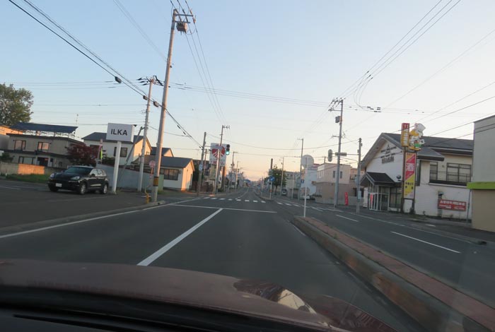 末広町の南岸通り、西4号線バス停前から野付牛自動車学校方向