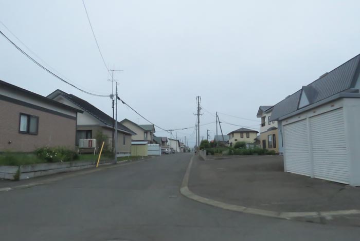産岸通りから左折して西5号線のバス停前から北光通り交差点方向