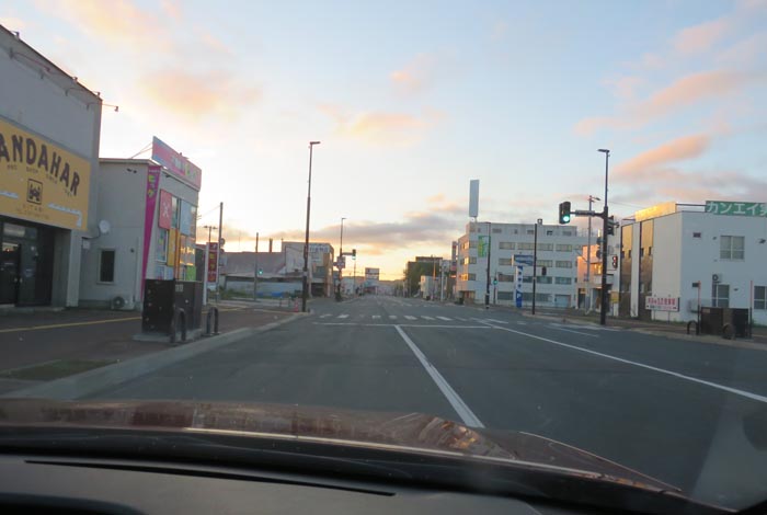 末広町の南岸通り、西4号線バス停前から野付牛自動車学校方向