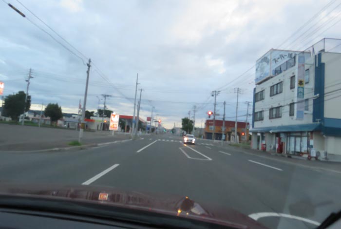 南岸通り、野付牛自動車学校前、前方はとん田通りの交差点