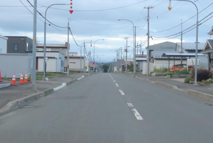 産岸通りから左折して西5号線のバス停前から北光通り交差点方向