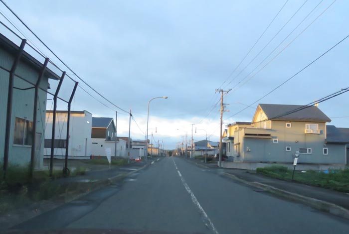 産岸通りから左折して西5号線のバス停前から北光通り交差点方向