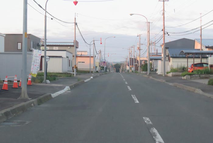 産岸通りから左折して西5号線のバス停前から北光通り交差点方向