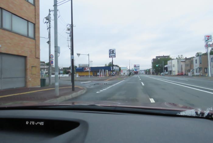 末広町の南岸通り、西4号線バス停前から野付牛自動車学校方向