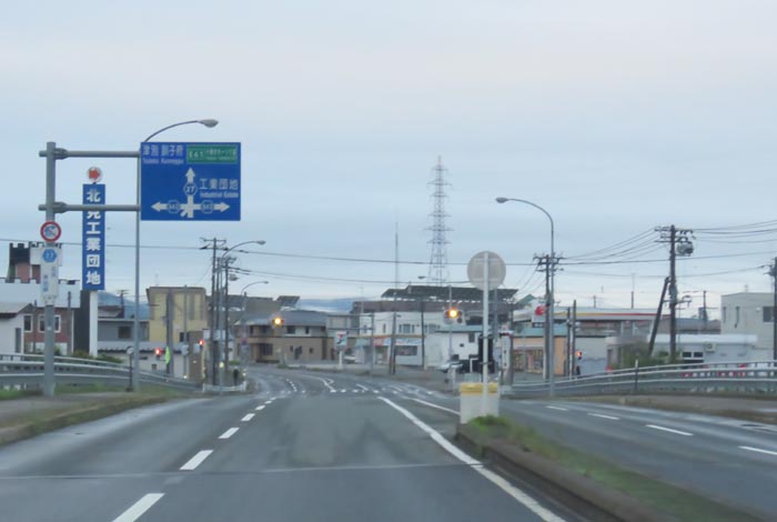 とん田通り、無加川橋を渡り錦町の南岸通り交差点