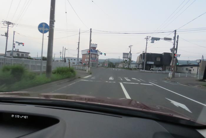 南岸通り、野付牛自動車学校前、前方はとん田通りの交差点