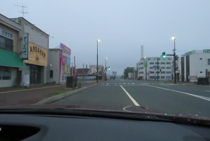 末広町の南岸通り、西4号線バス停前から野付牛自動車学校方向