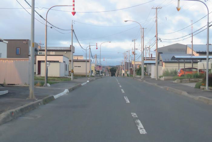 産岸通りから左折して西5号線のバス停前から北光通り交差点方向