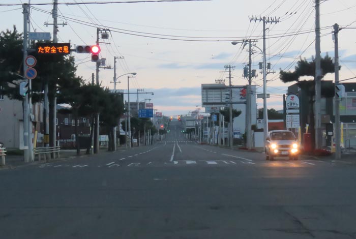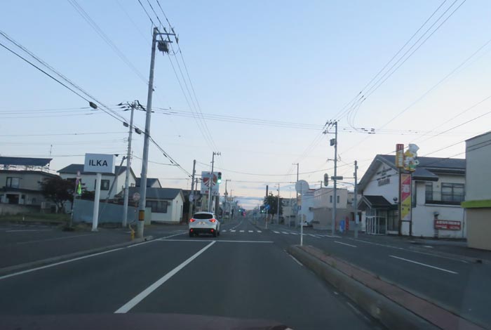 末広町の南岸通り、西4号線バス停前から野付牛自動車学校方向