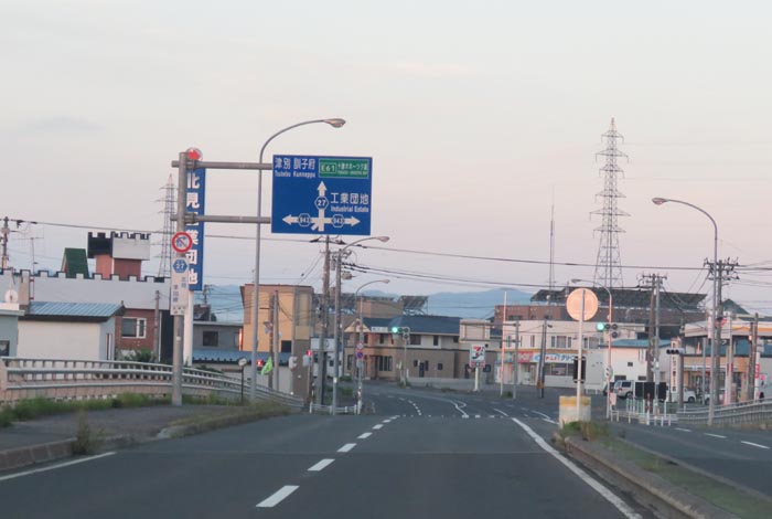 とん田通り、無加川橋を渡り錦町の南岸通り交差点