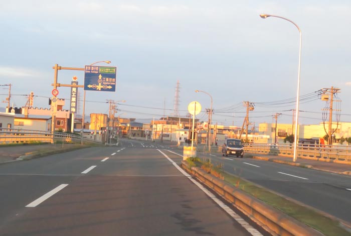 とん田通り、無加川橋を渡り錦町の南岸通り交差点