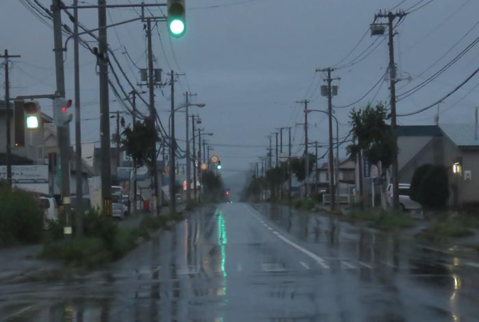 午前4時50分、南岸通り、野付牛自動車学校前から無加川町方向