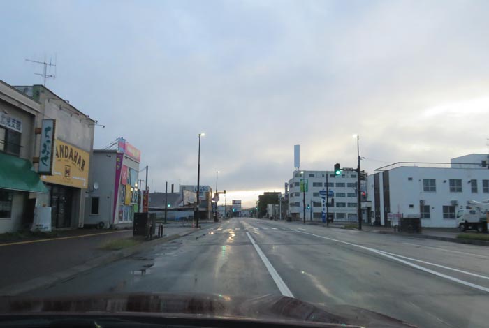 末広町の南岸通り、西4号線バス停前から野付牛自動車学校方向