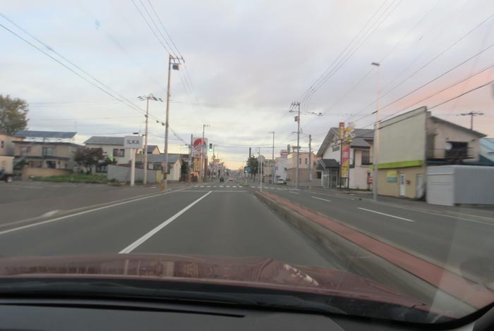 末広町の南岸通り、西4号線バス停前から野付牛自動車学校方向