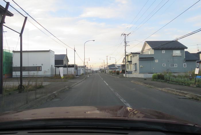 産岸通りから左折して西5号線のバス停前から北光通り交差点方向