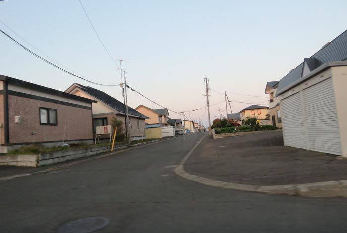 産岸通りから左折して西5号線のバス停前から北光通り交差点方向