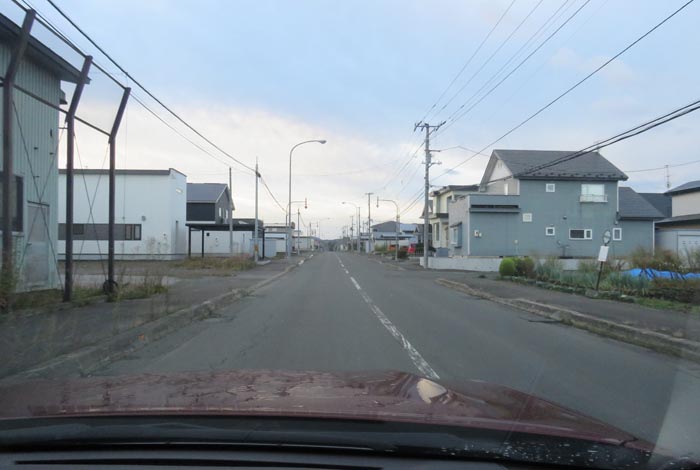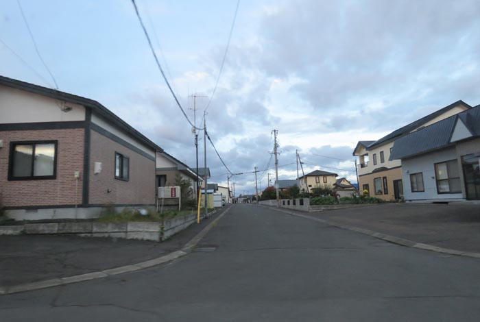 産岸通りから左折して西5号線のバス停前から北光通り交差点方向
