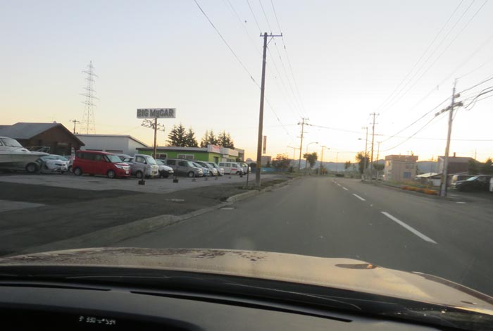 末広町の南岸通り、西4号線バス停前から野付牛自動車学校方向