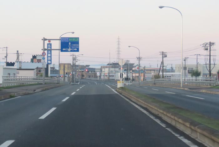 午前5時40分、西3号線とん田通りの北見中央病院横から無加川橋方向