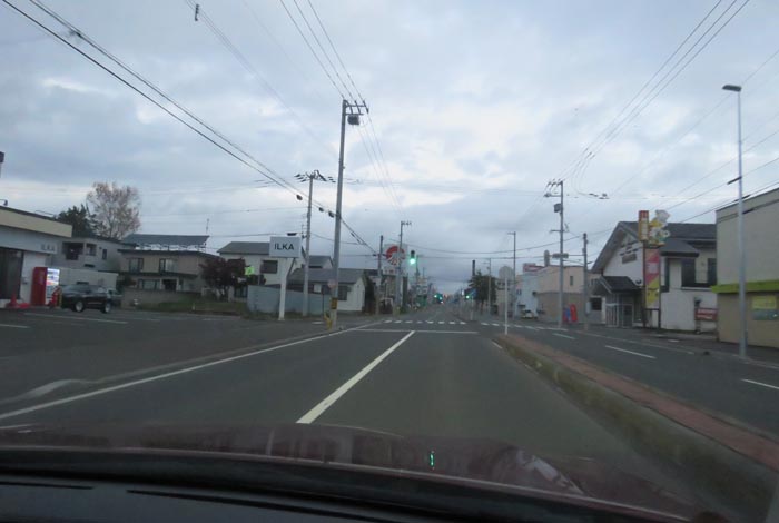 末広町の南岸通り、西4号線バス停前から野付牛自動車学校方向
