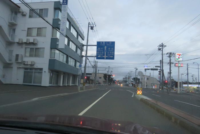 午前5時40分、西5号線、前方は南岸通りの交差点
