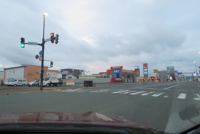 午前5時50分、北4条通りの国道39号交差点を右折で緑園通り方向