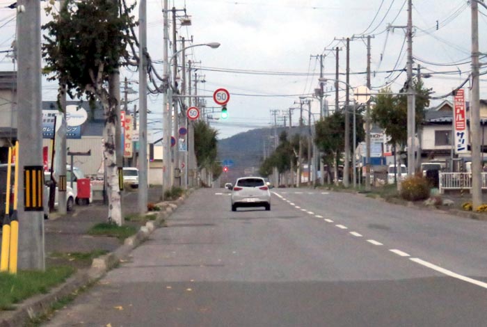 午前5時50分、南岸通り、野付牛自動車学校前から無加川町方向