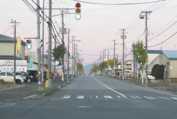 午前6時00分、南岸通り、野付牛自動車学校前から無加川町方向