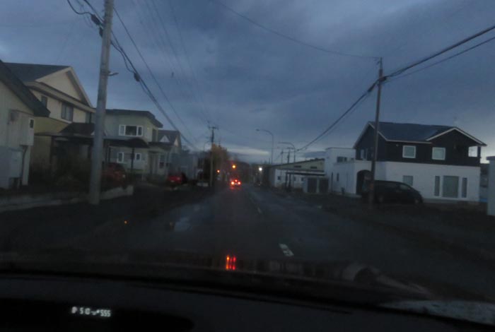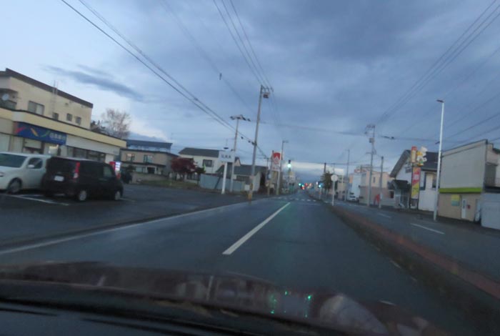末広町の南岸通り、西4号線バス停前から野付牛自動車学校方向
