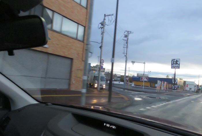 南岸通り、野付牛自動車学校前、前方はとん田通りの交差点