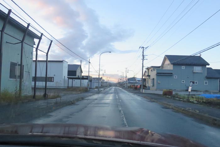 産岸通りから左折して西5号線のバス停前から北光通り交差点方向