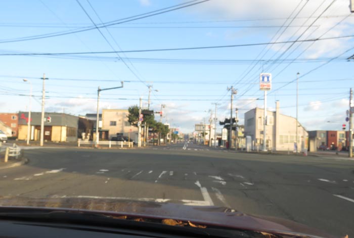 写真右が野付牛自動車学校方向