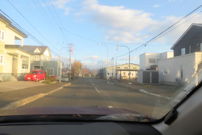 末広町の南岸通り、西4号線バス停前から野付牛自動車学校方向