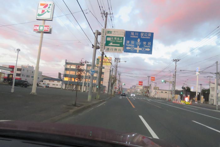 午前6時10分、北4条通りの国道39号交差点を右折で緑園通り方向