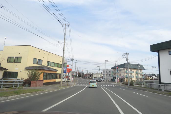 末広町の南岸通り、西4号線バス停前から野付牛自動車学校方向