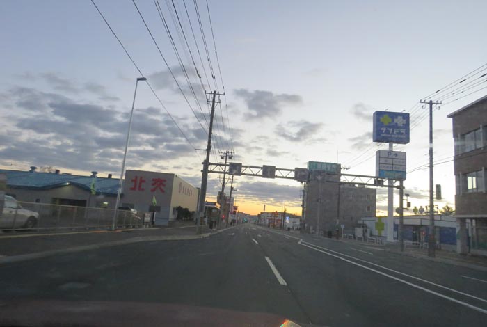 午前6時00分、西5号線、前方は南岸通りの交差点