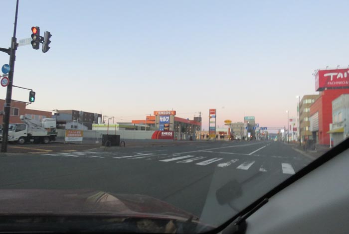 午前6時10分、北4条通りの国道39号交差点を右折で緑園通り方向